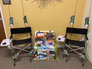 Great Outdoors Basket, with Yeti Cooler, 2 Anti Gravity Chairs, 2 Fishing Poles with Reels, and items to make the outdoors fun, value is over $600.00